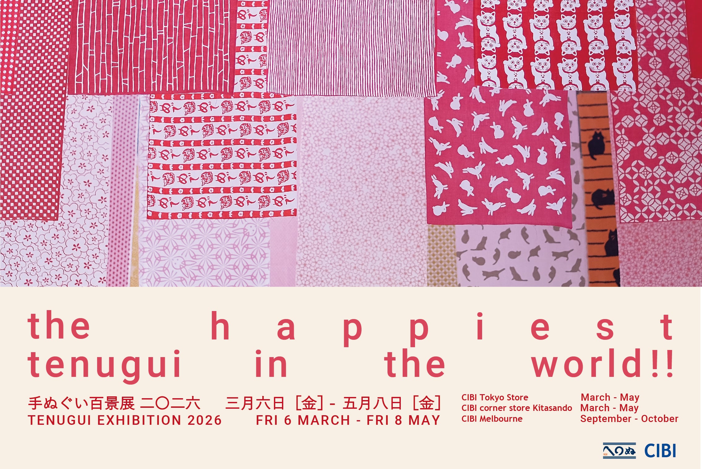 100種類もの多彩な手ぬぐいが広がる、"CIBIの手ぬぐい百景展2026"が今年も開催されます!