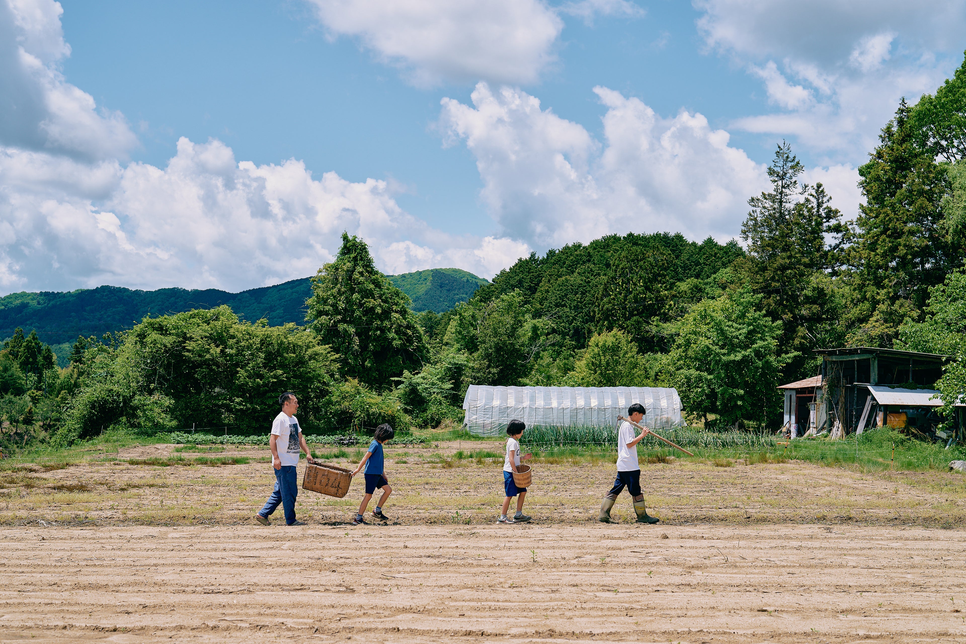 吉備中央町では、ゆったりと自然に寄り添う暮らしが営まれています。地元の人々は葡萄の木や菜園の手入れをし、伝統的な農家はその土地ならではの野菜を育てています。どこまでも見渡せる広大な水田、そよ風に揺れる竹林。昔ならではの知恵と風土豊かな食文化があり、自然と暮らしがとても近いところにあります。