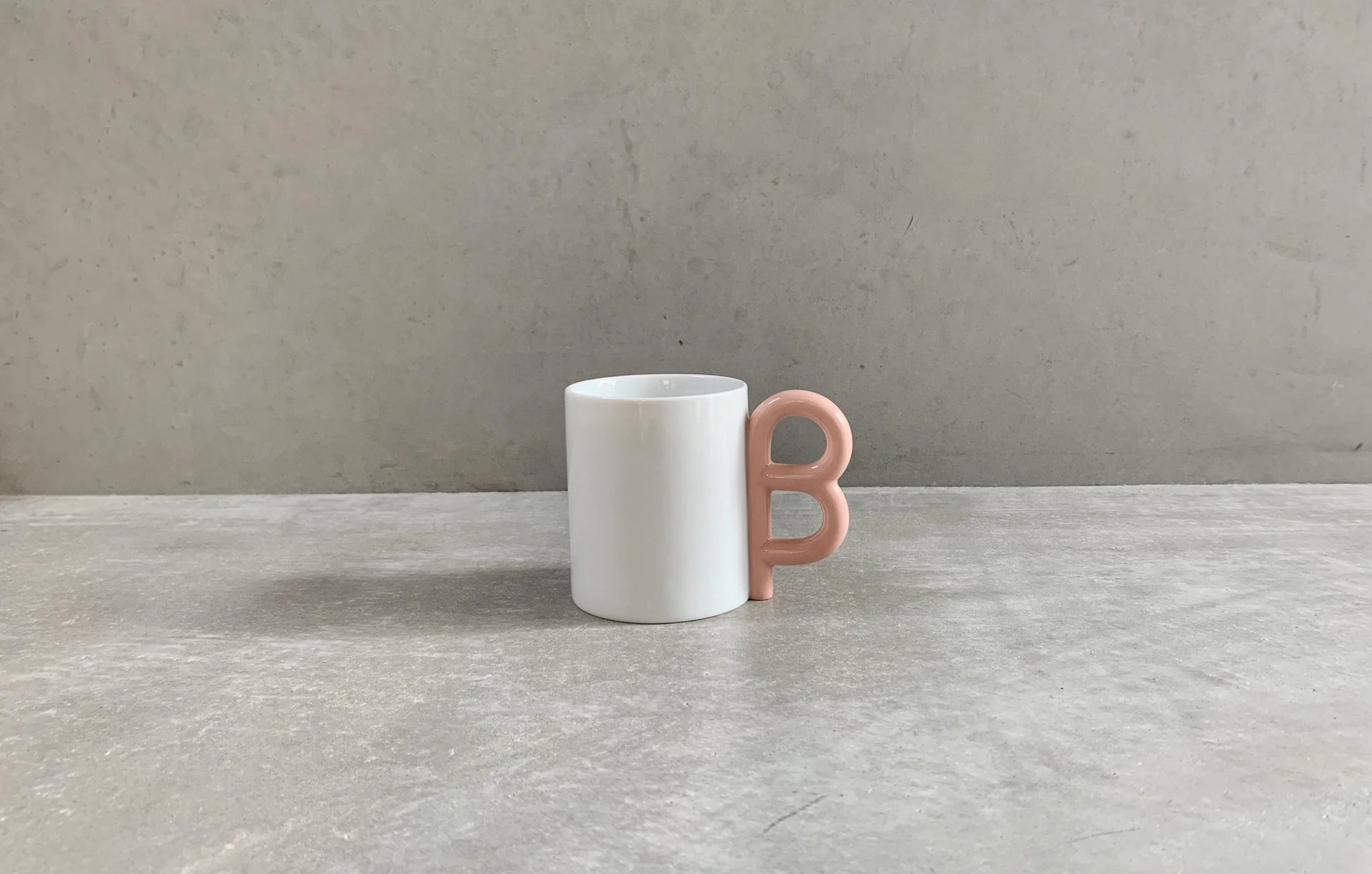 The tall mug with a B-shaped handle has a sense of stability and evokes a sense of fun with every sip.