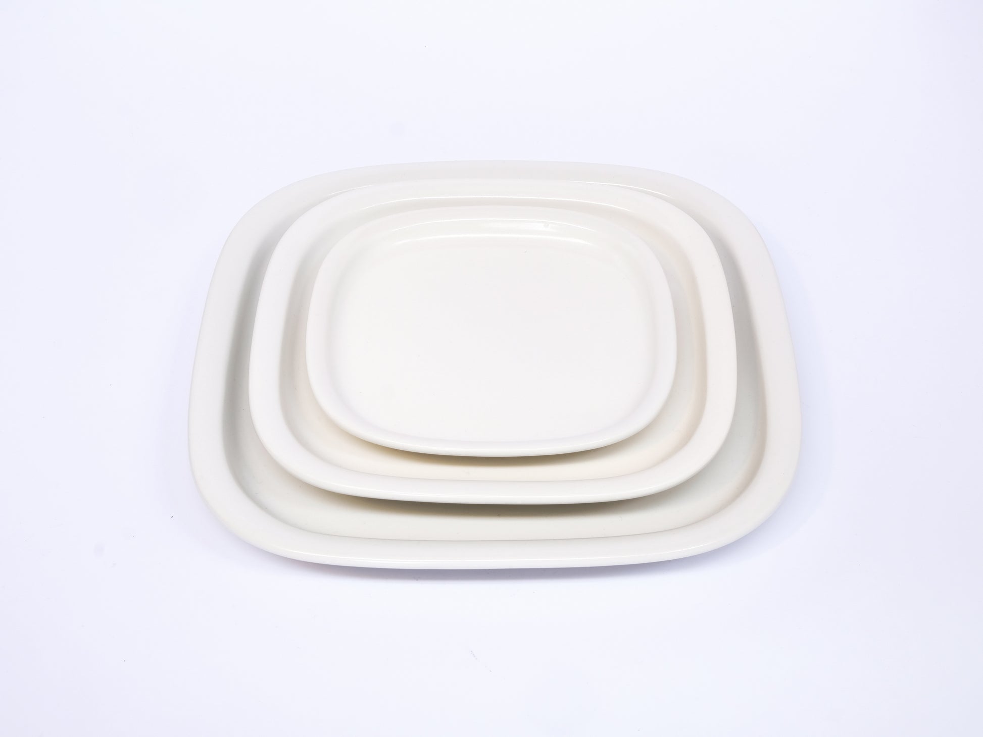 当時、陶磁器の量産食器といえば回転成形による生産が主流でしたが、本シリーズでは鋳込み成形(圧力鋳込み・排泥鋳込み)を採用。