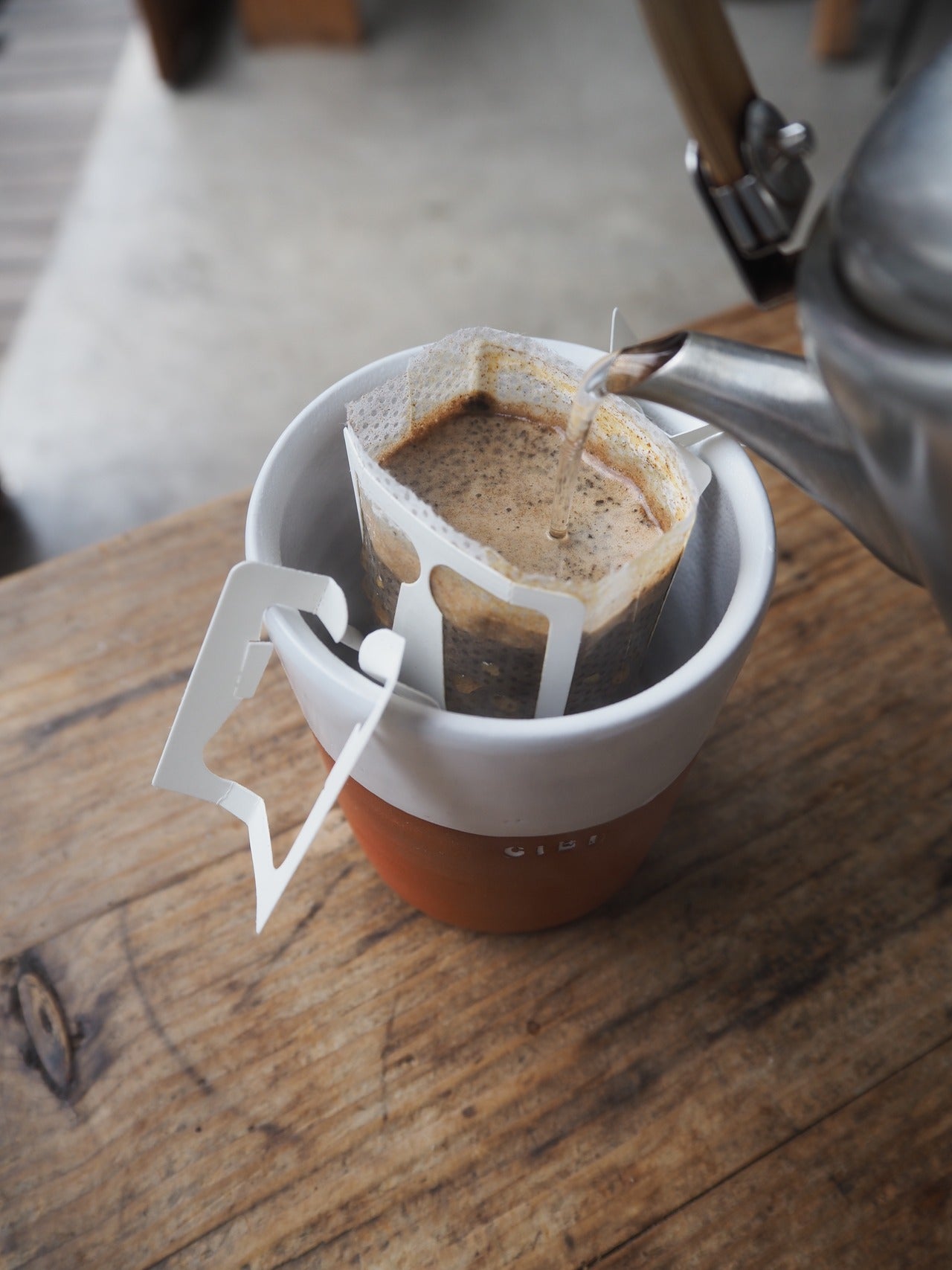 Place the coffee portioned filter onto your mug and pour over hot water. Yummy aromas and flavours of CIBI Tokyo Blend to enjoy !