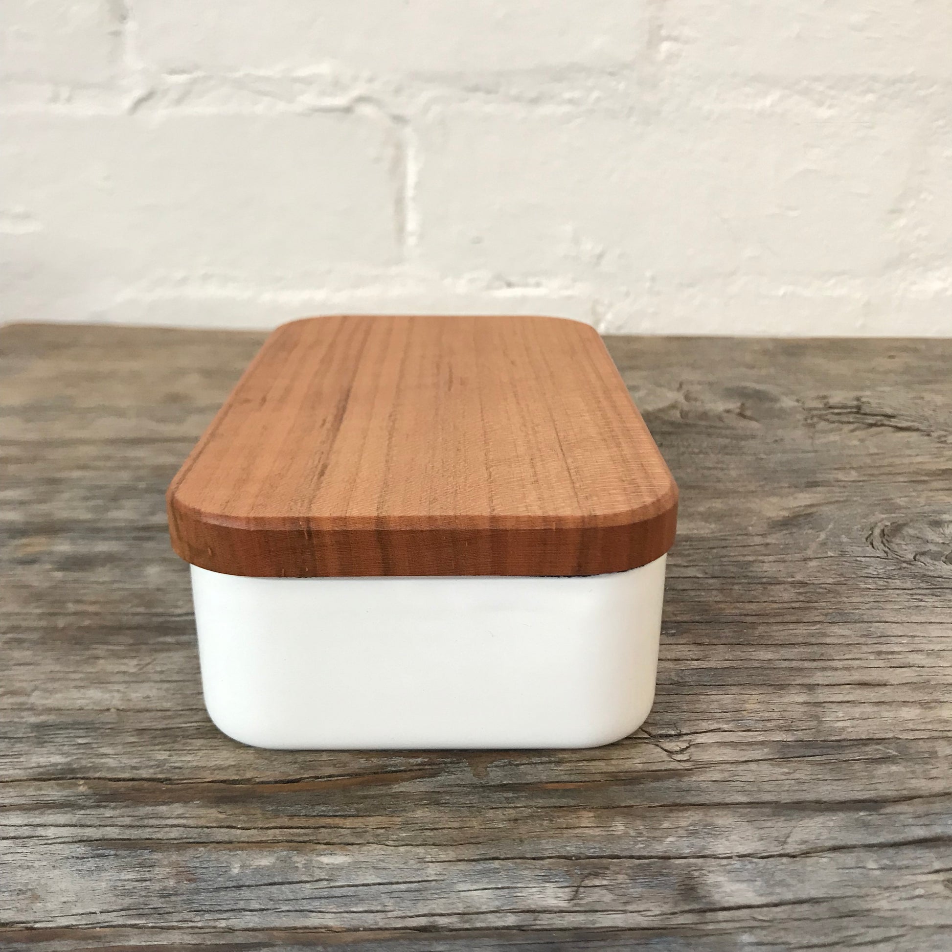 simple and beautiful enamel butter case to house your favourite butter.