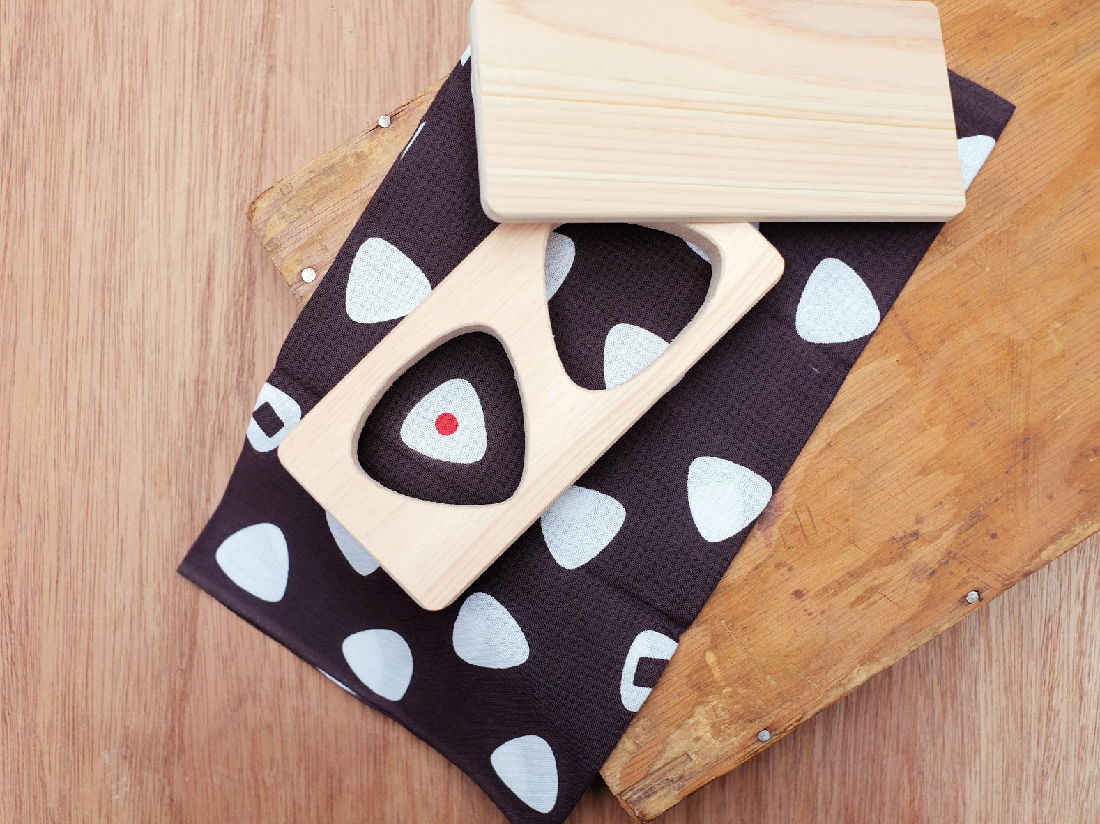 日本の檜で作られた、シンプルで軽やか、そして香りの良いおにぎり型です。