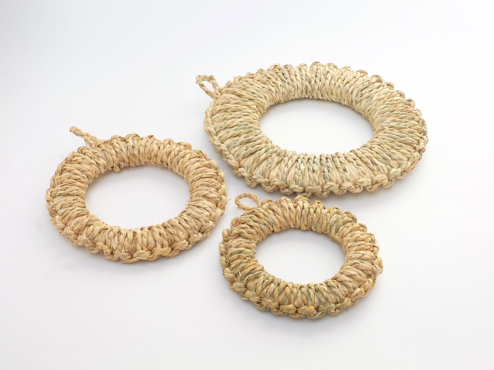 稲刈り後に残る稲わらを活用し、昔ながらの技法で丁寧に編み上げた鍋敷き。